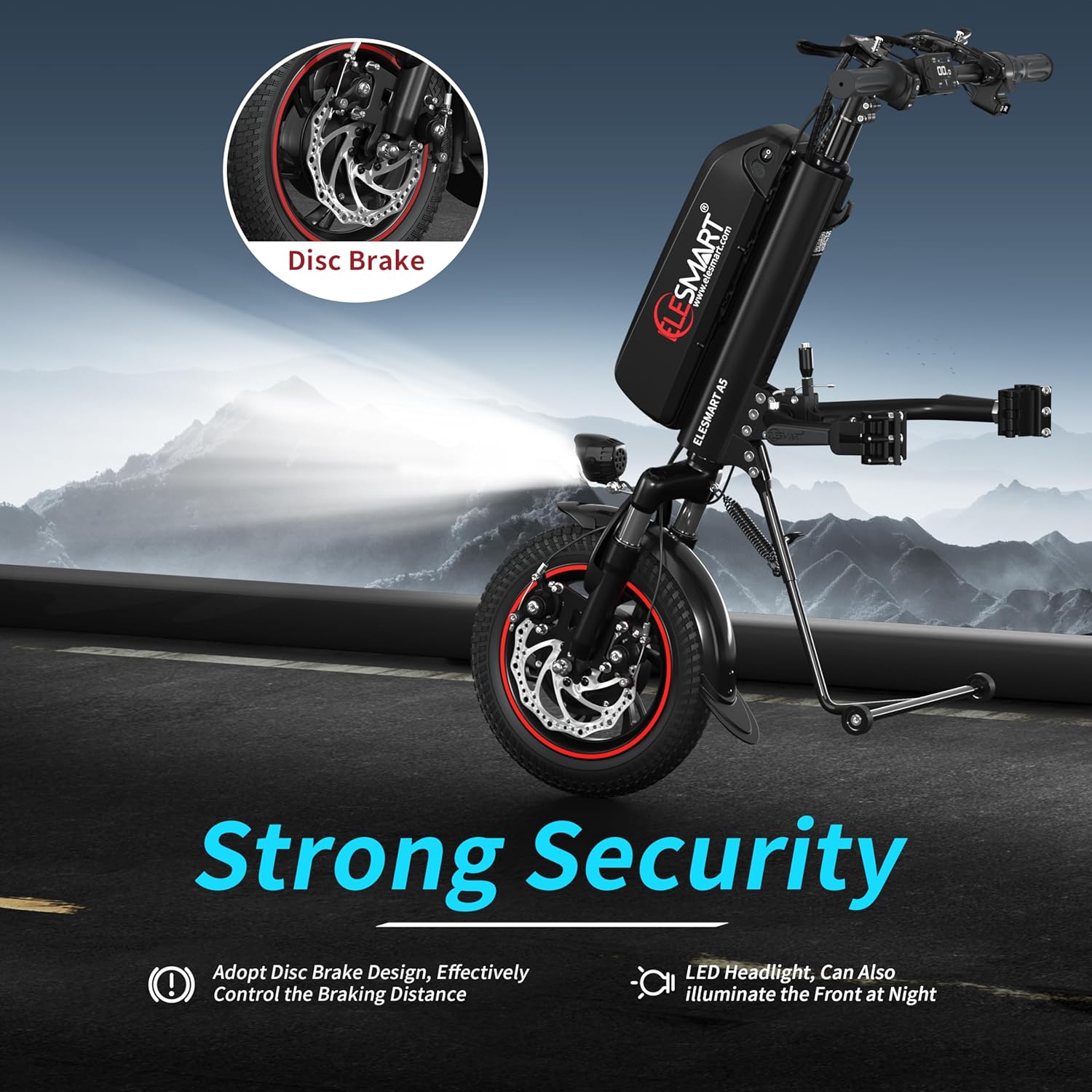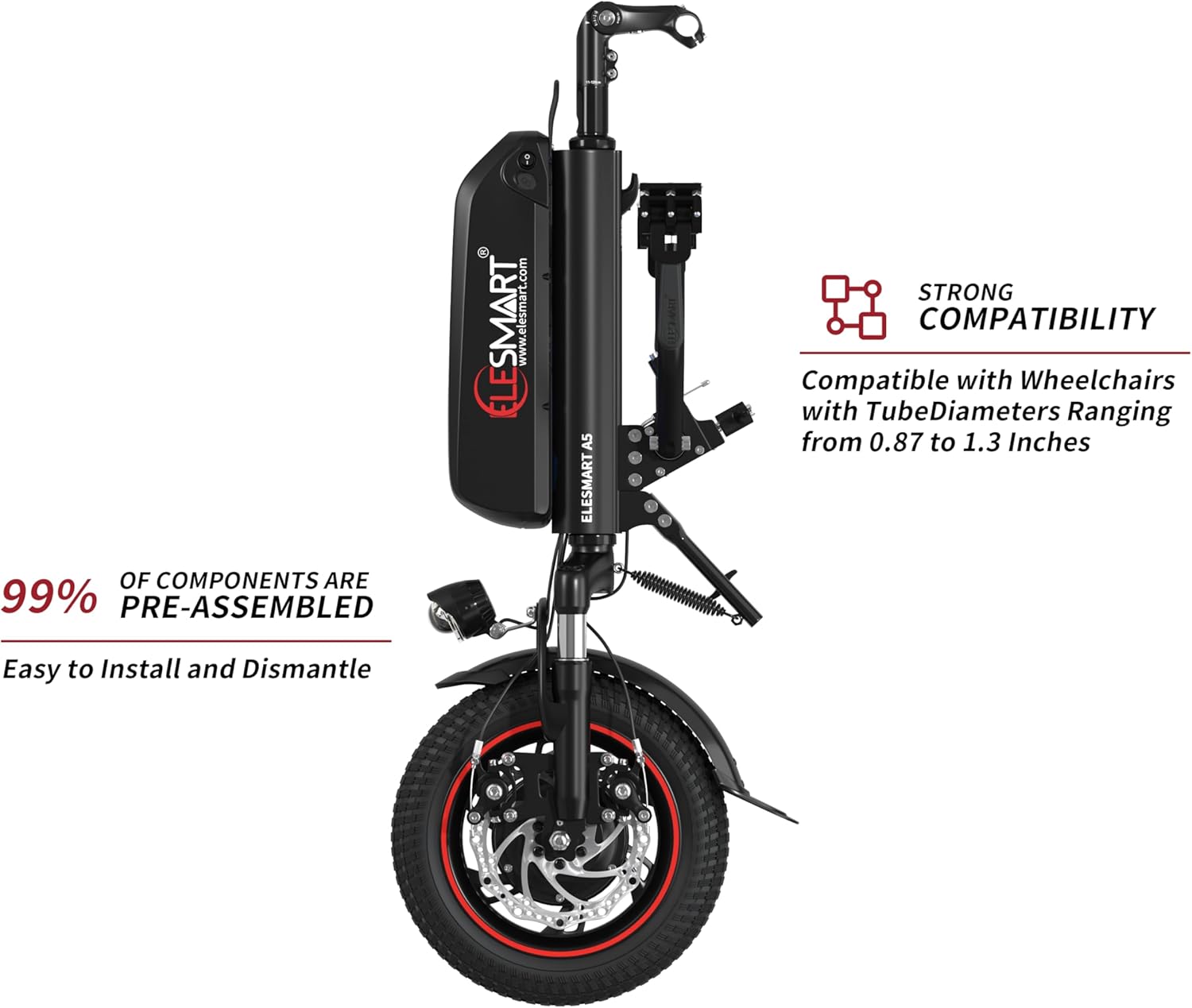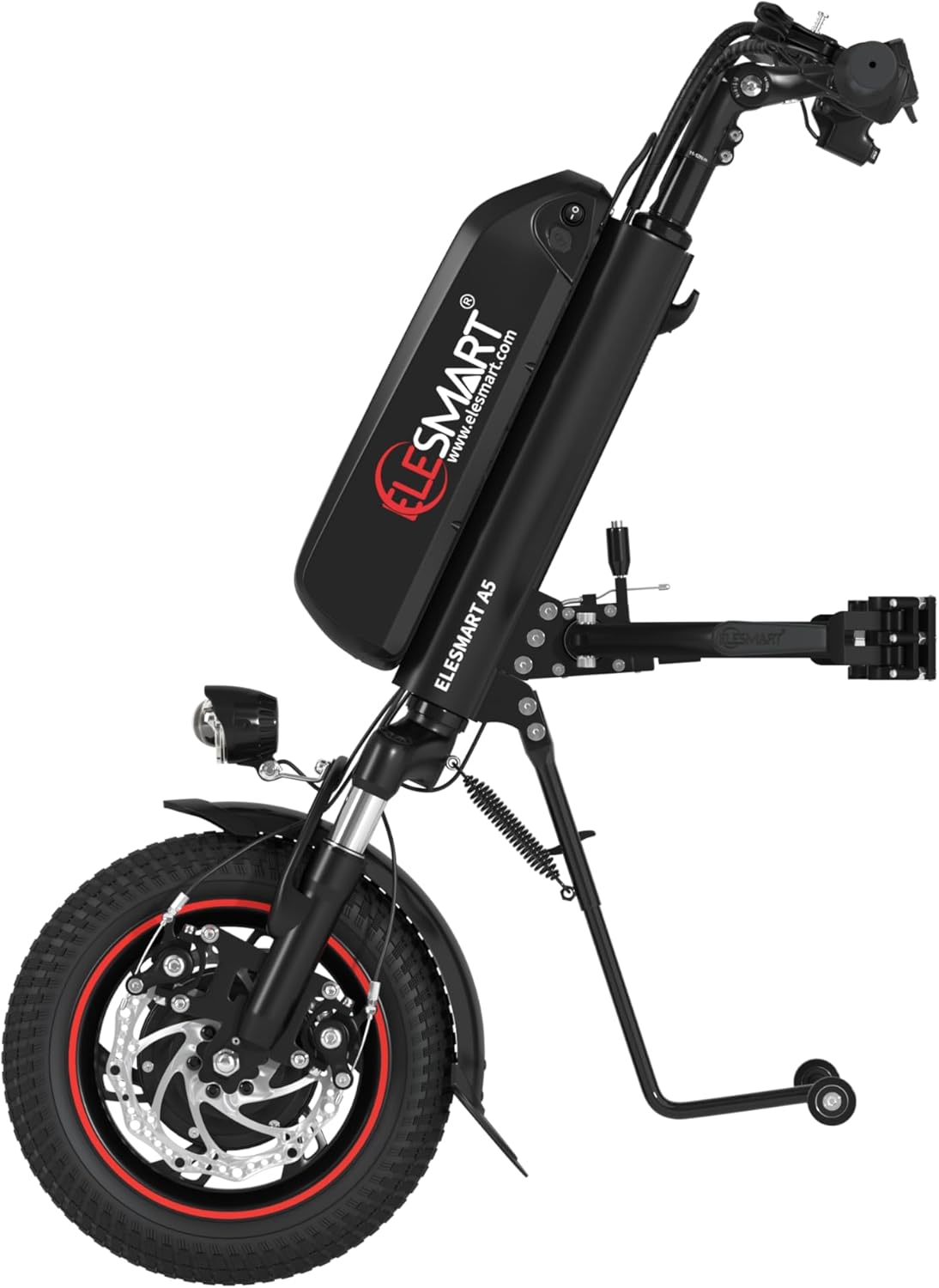A5 Elektrisch Rollstuhl Zuggerät, Elektrischer Rollstuhl-Antrieb zur Umrüstung von Manuell auf Elektrisch Rollstühle, 12,8 Ah, 36V 500W, Seitenanschluss, Schwarz