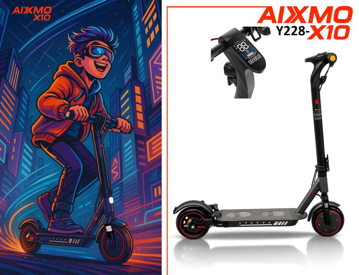 AiXMO-X10 Elektro City E-Scooter - Straßentauglicher Elektro-Roller - 350W - 30 KM Reichweite - 30 km/h Speed